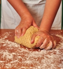 Remove dough and place on floured board. Knead for 5 minutes. Dough should be soft but not very sticky. Add a little more flour or water depending on consistency.